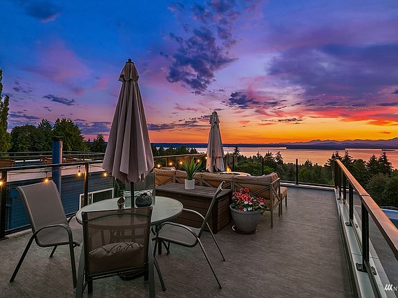 Perfectly situated NW Contemporary with extraordinary panoramic views of Puget Sound & Olympics! An entertainer's dream w/ huge rooftop deck + expansive main floor deck to enjoy sunsets & the serene setting. Extensive remodel includes floor-to-ceiling windows, new decks/railings, sliders, roof, paint, lighting, appliances, siding, gutters, floors, the list goes on. Private entrance on lower level for MIL potential. Secluded backyard w/ patio, lawn area & mature landscaping. Spacious primary suite offers balcony & wall of windows to wake up to the stunning views. Nestled on desirable & quiet street in coveted Gatewood neighborhood, a short stroll to Lincoln Park, restaurants, shops & just minutes from the bridge! This one truly has it all.