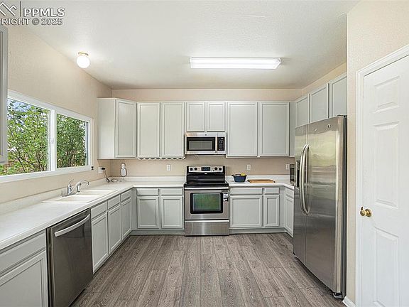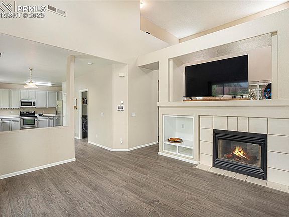 The seller upgrades in the last year, Brand-new A/C to keep you cool, New Pella windows for energy savings, Fresh paint and updated flooring throughout, A 2-car attached garage with easy main-level entry and extra storage so you get a fresh, modern space without the hassle of renovations. Relax on the cozy covered front porch with your morning coffee or evening chats with neighbors. Inside, the open floor plan feels bright and airy with high ceilings and lots of natural light—perfect for creating a warm, welcoming vibe. The two-sided gas fireplace adds a cozy touch, connecting the living and great rooms for movie nights or hanging out with friends. The kitchen is a dream for first-time buyers! It’s got plenty of counter space, stainless steel appliances, a pantry, and easy access to a big concrete patio and fully fenced backyard—great for BBQs, pets, or even a future garden. Plus, the low-maintenance landscaping means less yard work and more time to enjoy your new home. Upstairs, all three bedrooms have soft, brand-new carpet for extra comfort. The primary bedroom is your own private getaway with a walk-in closet, double vanity, and a relaxing tub/shower combo—perfect for unwinding after a long day. The ensuite bathroom has new flooring, adding to the home’s fresh, clean feel. Located in a friendly Colorado Springs neighborhood with top-rated District 49 schools, this home has low HOA dues and is super close to Powers Blvd, Peterson Space Force Base, Woodmen Valley Park, and The Promenade Shops at Briargate. You’ll love being just minutes from hiking trails, restaurants, and fun entertainment. This low-maintenance, move-in-ready home is a fantastic value for first-time buyers looking to start their Colorado Springs adventure.