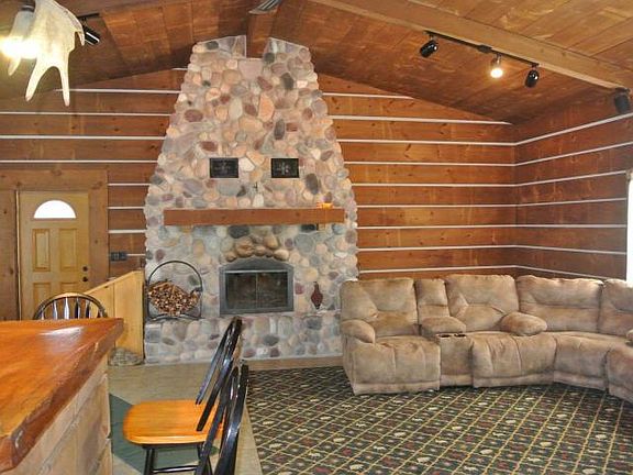 End of the road privacy is what you'll find here. This well cared for Northwoods home features knotty pine walls and/or ceilings a huge great room with a bar area and a floor to ceiling stone fireplace as the focal point - a perfect place to spend your winter evenings. There is a spacious eat-in kitchen and a separate dining area if you need more space. Two main floor bedrooms, a full bath and laundry area round out the main floor. The lower level features several rooms - including a bedroom and half bath, along with a hobby room. The outdoor space was made for entertaining with an enormous patio and plenty of landscaping. In addition to the detached 16x28 garage, you will love the 32x32 garage which is finished with in floor heat, water and electric - a perfect spot for your snowmobiles or ATV's plus so much more. Metal roof - 2007. If you're looking for a year round home or a vacation get away - make sure you put this one on your list to see. You won't be disappointed.