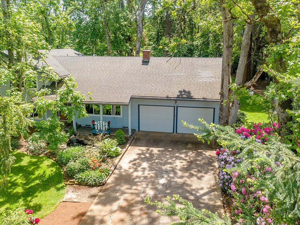 Beautifully maintained home on park-like acreage just outside of Salem. Possible dual-living with bedroom/ full bathroom and large family room on lower level. Three bedrooms and two full bathrooms upstairs. Fantastic primary bathroom was fully remodeled in 2018. Triple-pane windows March 22. Woodstove is DEQ certified. nice shop off the back of the garage. Deck overlooks the gorgeous yard with mature oaks, year-round creek with waterfall, strawberries, blueberries, etc! Poss of adding a bonus rm