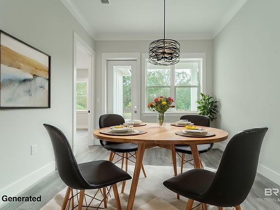 Charming Coastal Retreat in Gulf Shores – New Construction, Welcome to your dream home! This stunning four-bedroom, four-bathroom new construction is just 15 minutes from Gulf Shores’ sandy beaches. Enjoy a vacation lifestyle while still having the convenience of nearby shops, restaurants, and the Gulf Shores International Airport. Designed for comfort and style, this home features granite countertops and LVP flooring throughout. The spacious layout includes two master suites—one upstairs and one downstairs. The downstairs master is generously sized with an enclosed tub/shower combo and a walk-in closet. The upstairs master offers a luxurious retreat with a tiled shower, alcove soaker tub, a walk-in closet, and an additional closet in the master bath.With 10-foot ceilings on the main floor, 9-foot ceilings upstairs, and 8-foot doors downstairs, the home feels open and airy. The exterior showcases durable Hardie siding and a fully sodded yard with a sprinkler system.The home is equipped with a dishwasher, garbage disposal, microwave, range oven, and refrigerator, making it move-in ready. Tours are available now.The neighborhood offers a pool, and Picnic area providing endless opportunities for relaxation. Don’t miss out on this chance to own a beautiful new home in a vibrant coastal community. This Gulf Shores gem combines vacation living with the comfort of a brand-new home, perfect for entertaining guests and peaceful evenings. Photos of the kitchen, living and dining area, and also the bedroom are AI Generated photos to help buyers see what the room could look like with furniture and decor. Buyer to verify all information during due diligence.