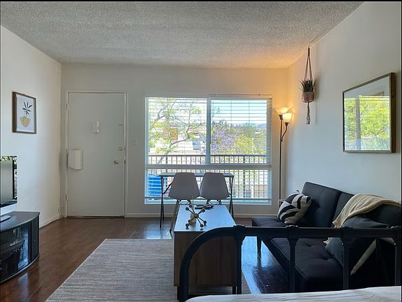 On the top floor, you'll have a view of the Hollywood Hills and be just a block away from the beautiful West Hollywood Gateway, home to over 10 restaurants, Target, and many other shops. The perfect walkable spot. Spacious with lots of storage! Secured entry, 1 parking spot, shared laundry on ground floor. Pet friendly with pet deposit. *Apartment can come furnished as pictured, or unfurnished. Easy to see, just call or text Nicky at to schedule a tour. Owner pays for water and trash.