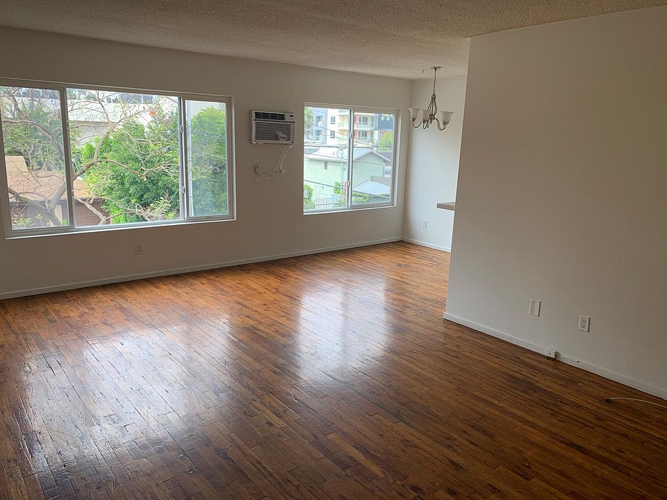 Enjoy a one year lease in this large one bedroom apartment equipped with a full bath, kitchen and living room. This apartment is on the top floor of the complex and has a great view of Hollywood right from your living room. There is a ton of storage space and the unit is equipped with a walk in closet. Floors are all hardwood. Includes air condition, secured entry, 2 car parking in the garage and a laundry room on the premises. Location is HOT, walking distance to picturesque restaurants and nightlife as well. Feel free to schedule a tour with us. Easy to show, contact-less for corona virus precautions. Pets considered. Landlord pays for water and trash.