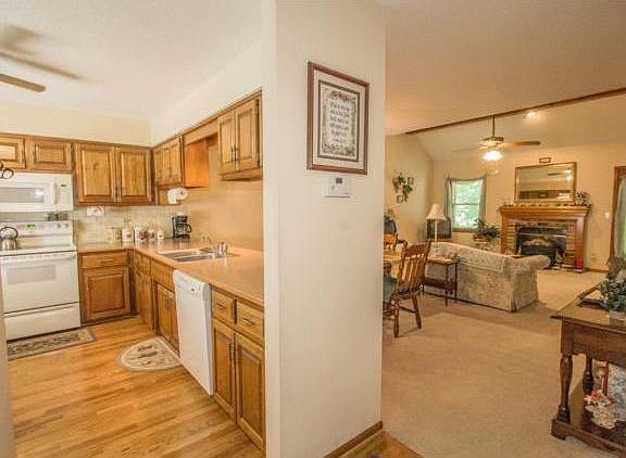 True Ranch Townhome in the heart of Gladstone. 2 bedrooms, 2 baths on main floor. Basement is mostly finished with 1/2 bath & large walk-in cedar closet. Tons of storage & built-in cabinets & shelving. Pit for sump pump is there but never needed. Kitchen & baths all updated. New faucets. Newer enlarged deck off great room. All appliances stay. Home has transferable warranty w/ Old Republic Home Warranty. Large 2-car garage w/opener. Convenient to shopping & highway access. Very nice home.