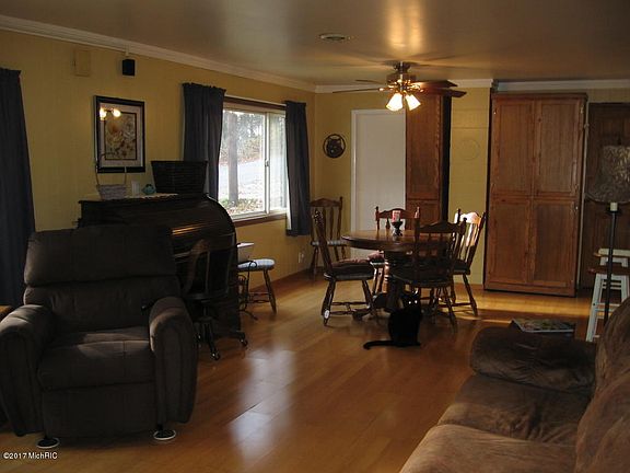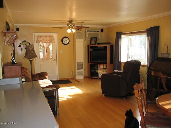 Make your appointment today to see this 2 bedroom one bath cutie with Gun Lake across the street. This ranch with an open floor plan is very appealing along with the neutral decor. There are two large windows that overlook Gun Lake in the living room and dining area. The exterior is maintenance free with vinyl siding and metal roof. There are additional storage sheds. There is also a cement pad and trailer hookup at the back of the property. It is located on the corner of Schnoeherr road which is a seasonal only road. Access and boat launch to the all sport Gun Lake is just down the road. This is a perfect spot to get away from it all. All appliances, wall unit air conditioner and a one year warranty are included in the sale. The LP tank is not included in the sale. Priced to sell!!!