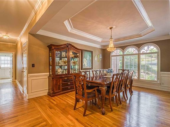 Stately 3 sides brick home with bright open floorplan and spacious oversized rooms. Two story Great Room, Kitchen with granite and bright and cheerful breakfast room. Banquet sized Dining Room, bedroom with full bath and Living Room/Office on main. The massive Master Suite boats a bayed sitting area, luxury bath and spacious closet with natural lighting. Enjoy grilling out on the oversized deck overlooking the private backyard with creek or enjoy your morning coffee with the birds singing. Wait until you see the newly finished daylight basement with great room with built-in bookcases, fireplace, bedroom and full bathroom, exercise room, theatre room,kitchen with dishwasher and granite countertops, pantry, pool table room and storage. Enjoy evening sunset golf cart rides through the golf course and neighborhood. Close to Vickery, grocery, greenway, etc. Appraisal completed 6-2020.