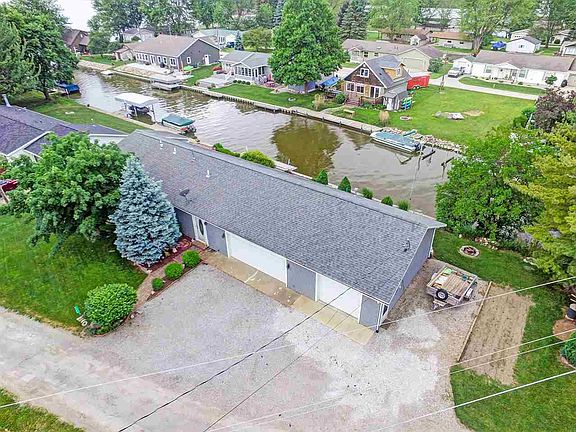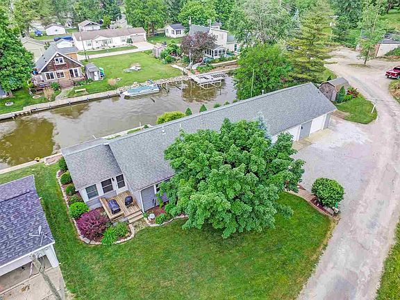 Welcome to the lake. Channel front home is located on a five lake chain; two skiing and three fishing lakes. Well maintained three bedroom, two full bath. Large master bedroom with en suite. One bedroom is currently being used as an office. 12 x 20 sunroom with wall of windows and access to a 16 x 20 composite deck with beautiful lake views. Newer siding, windows, doors and roof. Custom kitchen cabinetry. Refrigerator, stove, washer and dryer stay. Water softener stays with home(owned/not rented) Concrete seawall and professional landscaping. 10 x 12 shed for storage of lake toys. Huge heated 3 1/2 car garage with ample storage cabinets. 200 amp elec service. 148 feet of channel frontage.