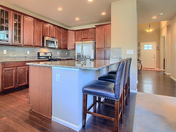 "Freshly Painted and New Flooring". This beautiful home is located in the Amazing Southshore Community. This home has many upgrades, including a large gourmet kitchen with granite counter tops, kitchen island, 42" cabinets, stainless steel appliances and gas cook top. The main floor has "Luxury Vinyl Flooring" throughout. The laundry room downstairs completes the main floor. On the upper level there is a large open loft; which can be an additional living room, play room or office. There are 2 large secondary bedrooms, a bathroom and a spacious master suite. The master suite has it own private master bath with double sinks and a large walk in closet. All rooms have ceiling fans. This sought after neighborhood has amenities for everyone! Salt water pool, biking trails and Aurora Reservoir right outside your back door. New tesla solar panels which will minimize your electric bill, new backyard and patio. Award winning schools. Won't last long, contact us today.