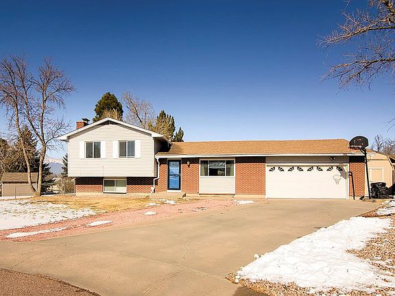 Welcome home! Notice the open airy feel of the main floor level, with an open kitchen/dining area with breakfast bar, tile flooring throughout, and walk-out area from your dining room as well as garage access. Walk down to the lower level to enjoy a large family room with wood burning fireplace and corner bar great for entertaining. Enjoy a second bedroom suite in the lower level with attached upgraded bath, just off the family room! On the upper level, find an additional 3 bedrooms, including the master with upgraded master bath. There is a partial, unfinished basement space, bring your ideas, great for that man cave, office space, or great storage area! Tons of upgrades throughout and an abundance of natural light give this home that move in ready feeling! As you walk around outside, notice the large, oversized lot finished with new fence, new sod, sprinkler system, and landscaping (hard to find in Colorado Springs), fully fenced, new concrete patio space to enjoy, storage shed, and lien-to storage area. Short drive to FT Carson!