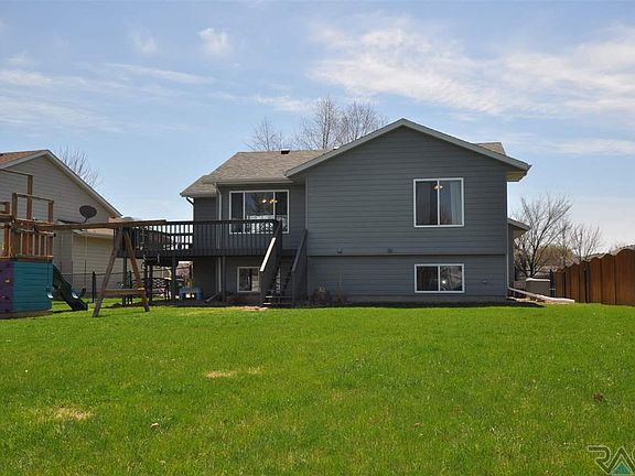 Inviting 3 bed, 2 bath home located in a popular southwest Sioux Falls neighborhood. Vaulted ceiling and large windows lead to the open concept main level featuring rich laminate wood flooring. Eat in kitchen offers breakfast bar for additional seating plus slider to deck access. Two beds on the main, including the master with convenient pass thru bath. Lower level features garden level windows, spacious family room showcasing a stacked stone gas fireplace, 3rd bed and ¾ bath. New roof and exterior paint! Huge fenced in backyard boasts established landscaping and trees. Great schools and conveniently located!
