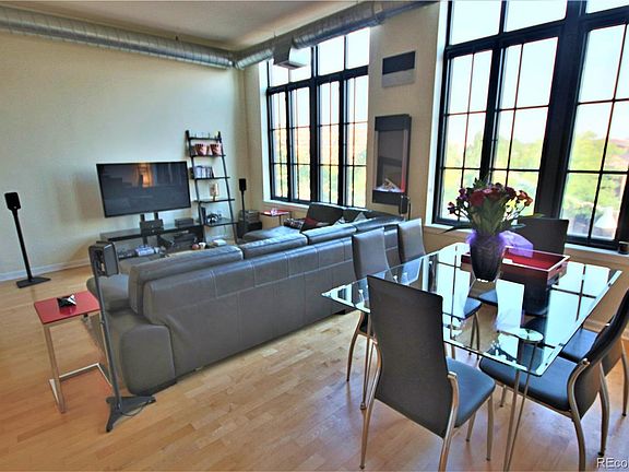 Huge, private patio is as big as some yards. This outdoor space is very unusual and adds a versatile dimension to loft living. Classic loft style with industrial exposed duct work and high ceilings. Open floor plan integrates kitchen with great room and allows lot\'s of natural light through the huge windows. Large bedroom has lot\'s of storage and French doors to the patio. Kitchen has stainless appliances, granite counters and island with breakfast bar that can comfortably seat four people. Unit has stylish, contemporary light fixtures and accents throughout. One parking space and storage unit in garage. Great location above retail space in Belmar. Walk to shopping and easy access to downtown and the mountains.