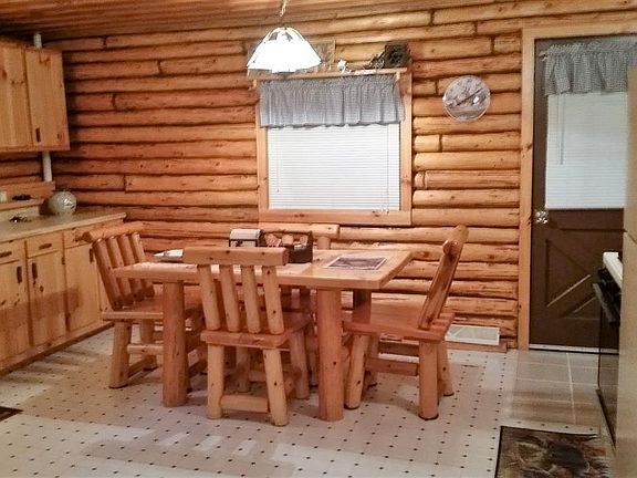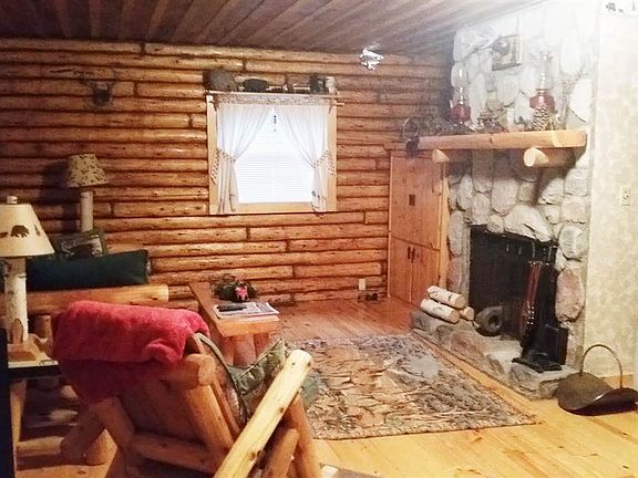 Looking for the perfect log cabin get-a-way? Search no further! This property is the one for you if you appreciate the rustic feel of gorgeous log interior intermingled with the perfect amount of drywall...wood floor throughout, covered back porch over looking the wooded back yard, and a beautiful stone fireplace to boot! Topped with a 20x20 detached garage... what are you waiting for, this beautiful log cabin home is calling your name! Close to boat launch, snowmobile and ORV trails.