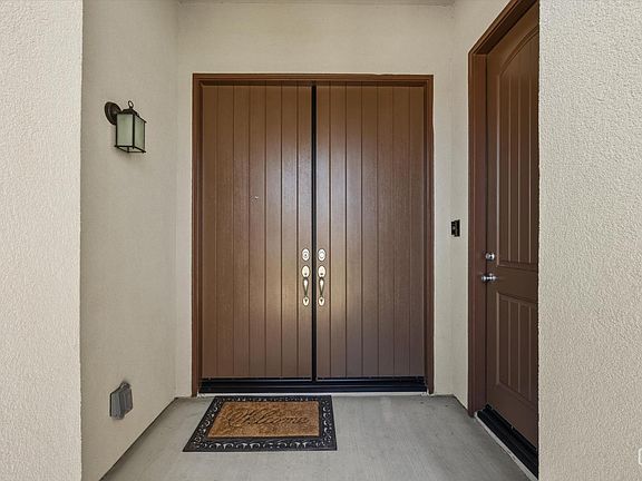 Almost new 2020 Bridle creek home on corner lot with over 2400 sq ft and owned solar. Walking distance to popular park. 4th bedroom could be a secondary suite reflecting its size and personal entrance from front of home. This stunning home has extensive amenities including plantation shutters, quartz counters, custom subway backsplash, ss appliances, walk in pantry, upscale lighting, upgraded cabinetry, double door entry, lite grain wood looking tile throughout, open concept split wing floor plan with spacious owner's suite. The backyard is immaculate and perfect for entertaining with large patio area, decorative retaining wall, drip system, concrete walkways, and Artificial turf complete this easy maintenance backyard. Home shows well and is very clean.