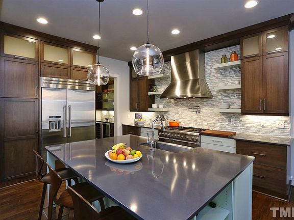 Gorgeous custom contemporary home in the Gated Community of The Cove at Falls Lake. 4-car garage! HASENTREE AMENITIES AVAIL! A hamlet of just 16 custom executive homes on Falls Lake (walk to water's edge) mins from Wake Forest & Raleigh! Stunning details & features throughout, each item carefully chosen/designed. True Gourmet kitchen w/professional grade appliances & a 1st flr owners suite complete w/spa like luxury bath. Floor-to-ceiling windows invite the outdoors in! Tranquility, Peace, & Serenity.