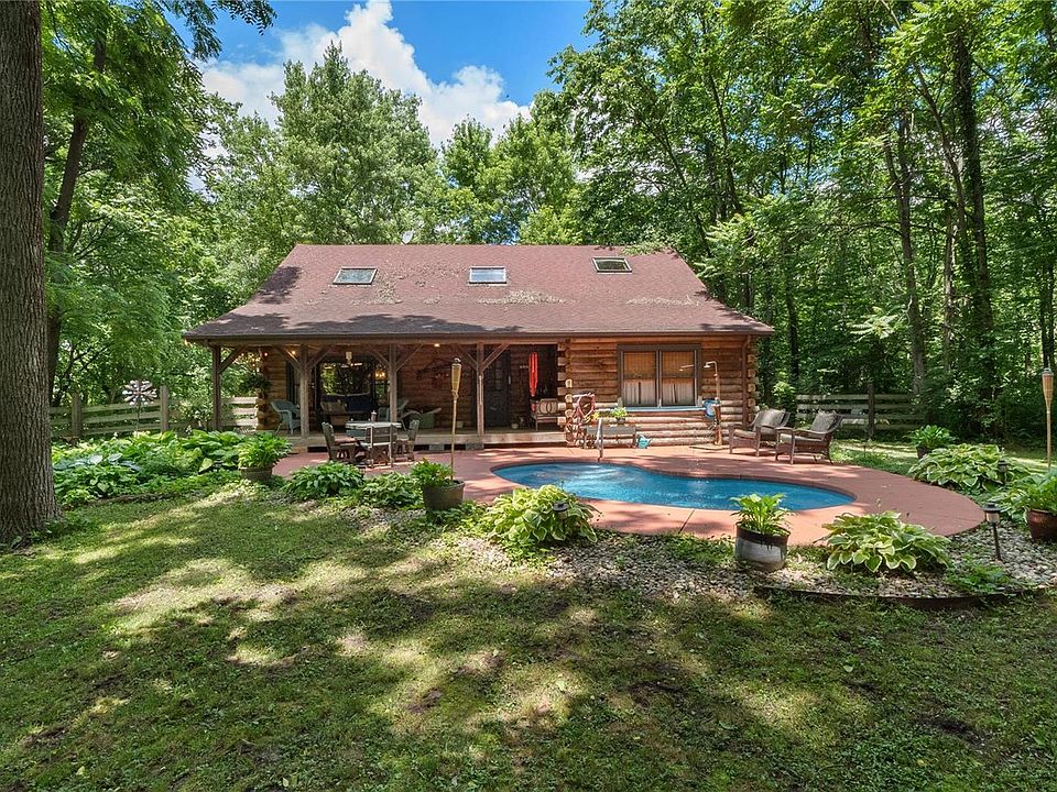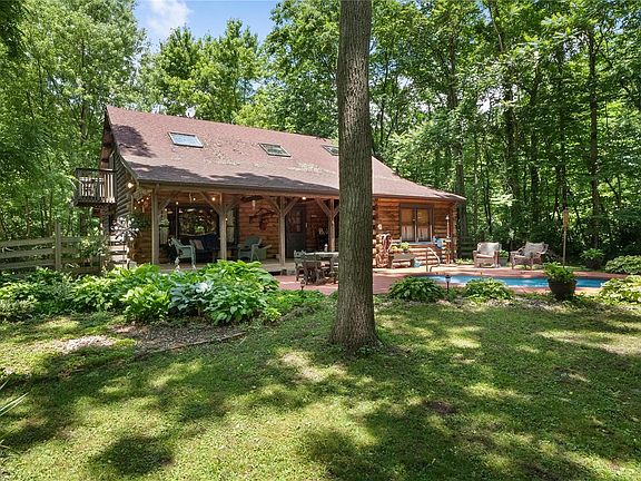 A log cabin in the woods is like nothing else. Whether its relaxing in your pool, curling up by the fireplace, enjoying an evening on the deck, taking on a project in your outbuilding or exploring the nearly 6 acres of woods, youll be sure to enjoy life in this beautiful home. The trees surround you as you walk through the wooden gate to your spacious front porch & into the vaulted living rm w/wood finishes all around you; take notice of the stunning stone gas fireplace. The Dining Rm & Kitchen meet you w/plenty of space & doors that open to the back deck. Off the Living rm is a 1/2 Bath, stairs to the lower level & Spacious Master Suite w/walk in closet, full bath w/soaking tub. Upstairs you have a loft overlooking the Living rm, 2 good size bedrms both w/decks & 2 full bathrms. The Lower Level has a family rm, bonus rm, full bath, laundry area, 1 car garage & storage area. Views of your serene property can be found out every window. (Additional adjoining acreage is available)