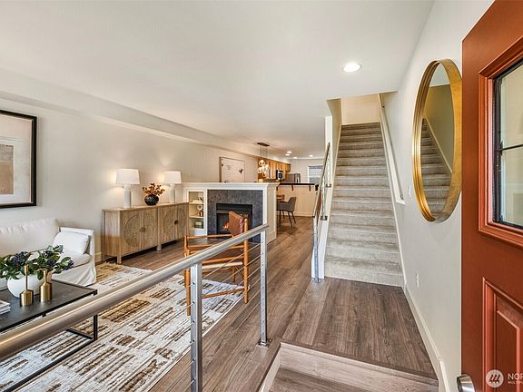 Welcome to Sylvan Ridge - West Seattle's hidden gem! With freshly updated floors, carpet, and paint, this townhome is move-in ready. The open living area invites you in with a stunning double-sided gas fireplace with plenty of space for summer entertaining. The chef's kitchen is built for style and function with a gas range, island with extra storage, bar top for serving, and an oversized pantry for all your essentials. Upstairs, vaulted ceilings make the generous primary suite feel extra spacious, with a second bedroom and bonus nook nearby. Downstairs, the den boasts an electric fireplace and built-ins adds, making it the perfect home office. Don't forget the single-car garage, which offers even more storage and convenience.