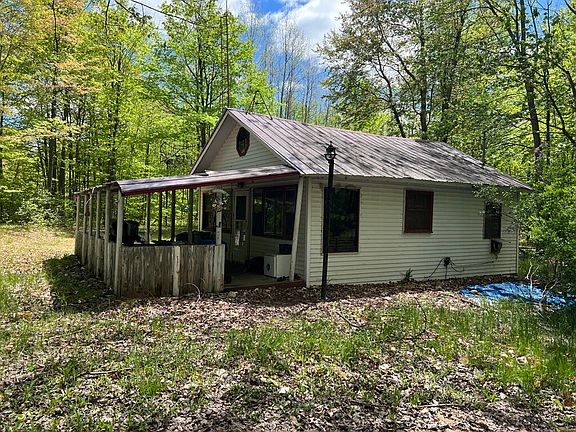 This secluded cabin in the woods features 7+acres, electric, well, septic, trails through the property, and a large driveway for all your toys. ORV and snowmobile trails at the end of the road, ride in, and ride out.