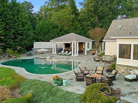 - Exterior features: Awning(s), Barbecue, Chimney Cap(s), Extensive Hardscape, Lighting, Flood Lights, Rain Gutters, Play Area, Stone Retaining Walls, Other