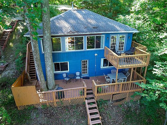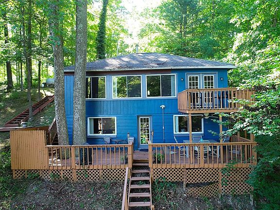 Welcome to Spring! Charming Cordry Lake cottage with big lake views to enjoy the Spring colors and beyond. Well kept 1 bed with bonus room and 1.5 baths. The main level maximizes the large lake windows and the separate cozy deck for ultimate relaxing. 2 family room entertaining areas, 1 on the main and the lower, conveniently located off of the kitchen. Hickory cabinets accent the kitchen and Offers a generous bar to accommodate hungry lake guests. Grill out and make your own lake memories on the main deck. The shore line is well equipped with a party deck with lift. Deep water makes the roomy dock a fabulous space to have fun in the sun! This home is offered turn key. The newer Harris pontoon is available outside the sale of the home