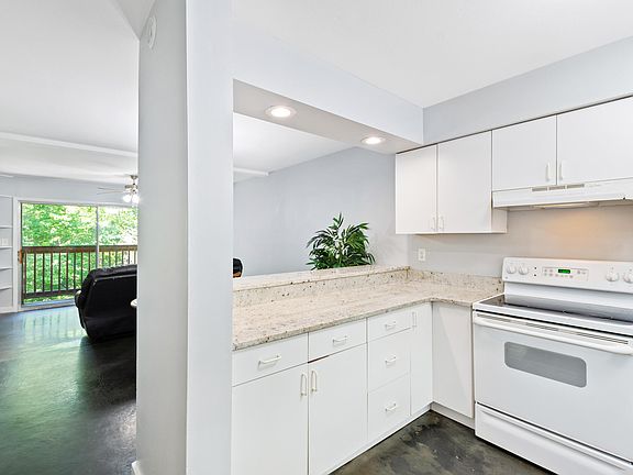 Raleigh condo offering beautiful backyard views, and convenient living at the edge of Raleigh's Midtown. Features include: an open floor plan, updates throughout, epoxy floors on main level, wood floors on second level with a tile bathroom floor. Kitchen is open to eating & family room and offers granite countertops, stainless-steel single bowl sink, abundant counter space, and an eat at bar. A work area with built-ins adds a touch of character to the family room, but can be an extension of the room as well. The primary bedroom has 2 step-in closets & sliding doors to the second deck overlooking the backyard. 2 private decks to enjoy the serene and wooded views. Secondary oversized bedroom with a large walk-in closet. The large full bath dividing the two spacious bedrooms has an oversized granite countertop and shower/tub combo. Conveniently located near the Raleigh Greenway, parks, grocery, shopping, restaurants, and more. I440, I540, North Hills Shopping, Lafayette Village, North Ridge Shopping, and Crabtree Valley Mall are all minutes away!