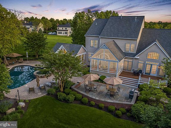 Enjoy your own personal oasis with incredible outdoor entertaining space in highly acclaimed Ashleigh Knolls! Stunning, fully landscaped and hardscaped yard with in-ground pool and hot tub featuring gorgeous waterfall, Ipe wood deck that will look beautiful for years to come, blue-stone slate patio, custom paver pool deck and amazing custom-built pool house with full bar w/ sink, refrigerator and icemaker, plus screened-in porch! Private, partially fenced yard is nearly an acre and has plenty of additional space to relax or play! Spacious gourmet kitchen with granite countertops and new high end stainless steel appliances opens to great room with 2-story ceilings featuring custom display wall and floor to ceiling stone gas fireplace! Formal dining and living rooms, office, and half bath also on main level. Bedroom level boasts a luxurious master suite with cathedral ceiling, double walk-in closets, sitting area and attached spa bath with double vanities, soaking tub and custom tiled shower. Additional master with attached bath makes for a great guest room. All beds and baths are spacious with large closets! Fully finished basement with additional room that could be used as a media room or bedroom with full bath, built-in speaker system and a large storage area. This home is an entertainer's dream! NEW ROOF & NEW SIDING just a few years old. All of this perfectly situated between Washington DC & Baltimore, just minutes from shopping, dinning and major commuting routes!