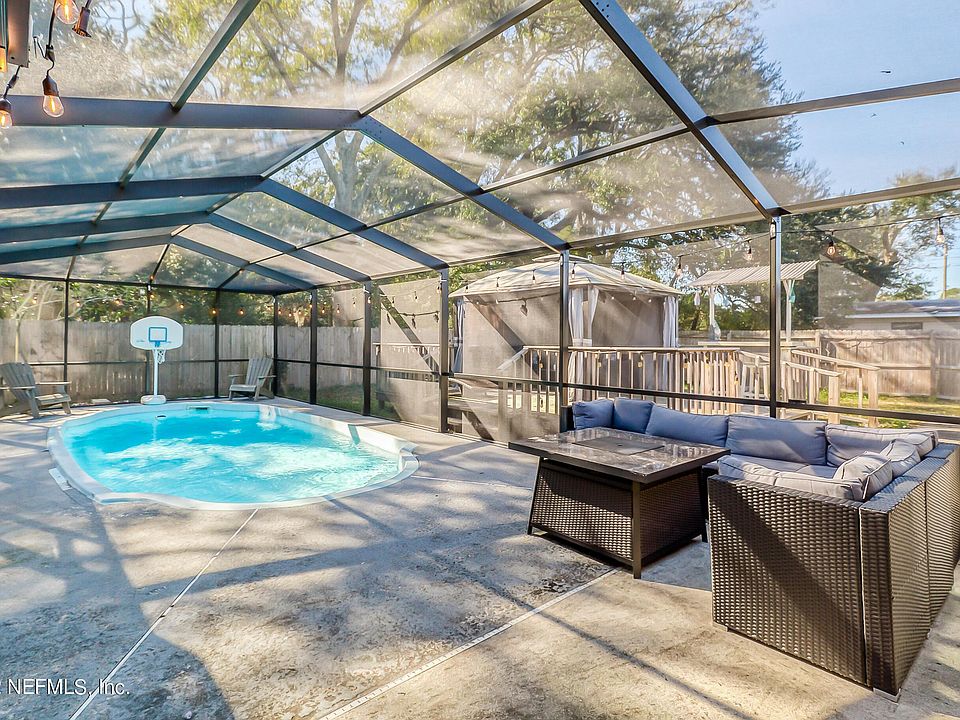 WOW!!! A 4 bedroom 3 full bath home with a screened in pool is now available! Home has two master bedrooms in opposite sides of the home. Bathrooms beautifully showing off Portuguese accent tile, that truly make this home a designer special. Kitchen offers new range with a black stainless (printless) vented range hood, newer SS refrigerator and dishwasher. In your backyard you will find the screened in pool and large deck for your entertaining pleasure. Roof is 6 years young. The AC, hot water heater and electric panel are all newer.