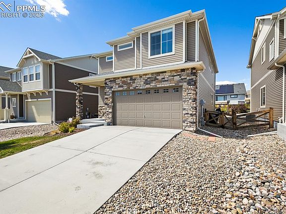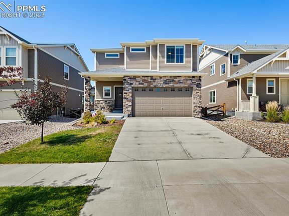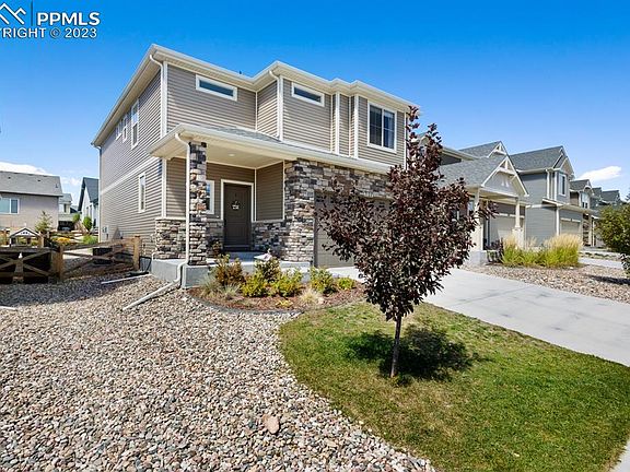 WELCOME HOME! This 4 Bed 3 Bath home located in beautiful Banning Lewis Ranch is a must see! Upon entry, take in grand main level that flows effortlessly from the entry into the cozy living room with gas fireplace into the large eat-in kitchen. This kitchen has amazing stone countertop space, cabinet storage, pantry, and large island making it the area where everyone will surely gather. Walk out to the back patio to enjoy the magical Colorado weather or that relaxing morning coffee. Back inside head upstairs to your primary bedroom with ensuite bath and walk-in closet. Three additional bedrooms with convenient full bath nearby. Laundry room is located near bedrooms on upper level to make things EASY! Playground across the street and just minutes from the local school, dog park, and community center. Gym, pool, pickleball and tennis courts are just a few of the many highlights of this wonderful neighborhood. You don't want to miss this one- schedule your showing today!