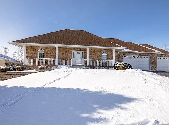 Think Spring, warmer days are coming, picture yourself in the lovely spacious ranch home. Full brick front, enjoy the morning sun on the covered front porch.Step into the stunning 2 Story great room with the most stunning floor to ceiling stone fireplace. Hardwood floors from the great room run into the office (Dining Room) kitchen and the year around sun porch. Breakfast bar in the kitchen, many built ins, eating area with french doors to the deck. A Split bedroom floor plan, the master bedroom features spacious walk in closet and private bath with separate shower & whirlpool. French doors open into the sunny spacious year round sun porch with fantastic views of the golf course. Partial exposed lower level with 4th bedroom, corner fireplace place in the family room, and seperate room for crafting, exercise equipment, full bath and a workshop/storage room. Newburg Village Golf is a 9-hole golf, well manicured. Whether you golf or not you will enjoy the open space & views.