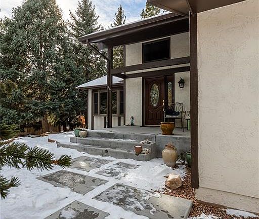 This two-story Rockrimmon, west-side home is situated in mature trees and close to the mountains and it features a main level master suite. This home is one you won't want to miss. It invites you home with covered front patio seating space and an entryway that will welcome all guests. Upon entry, you'll find a welcoming foyer and an open concept living, with cathedral ceilings and open dining and living room space. The main level master suite boast a bathroom with a walk-in shower and double vanity. Main level living / dining great room, family room, gas fireplace, built-in's, bookshelves and a walk-out to private back patio. There is an updated kitchen with granite counters, hickory cabinets, stainless appliances & hardwood and on the main level you find the laundry with sink, washer and dryer which stay. In the basement, you can entertain your guests with the large rec room, or family room area. You'll also find a flex space in the basement that can serve as a non-conforming bedroom/guest room (does have closet access underneath the stairs and egress windows), office or play room with a full bath. The basement also features an insulated lined crawl space for storing items. Outside you will find the landscaping is beautiful and allows you to enjoy it without having to spend a lot of time maintaining it. and allows you to enjoy it without having to spend a lot of time maintaining it. Includes whole house humidifier and Central Vacuum system. Garden of the gods is a 10 min drive or a 30 min bike ride. The well know Ute valley bike trails are only a 5 min bike ride. To hop on the Santa Fe trail to bike to downtown in a few minutes. Downtown Colorado Springs is a 10 min drive or 30 min bike ride along the Santa Fe trail. There is also Ute Valley Open space down the street.
