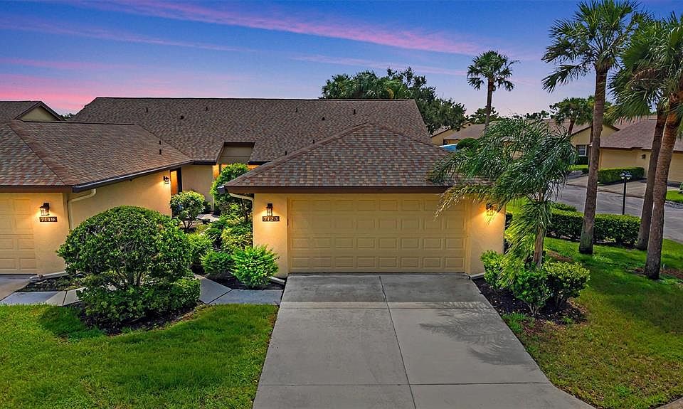 MAINTENANCE FREE LIVING! NEW ROOF! NEW HVAC! This beautiful villa is located in the WoodLake Villas section at Palm Aire, a sought-after Sarasota community. Featuring 3 bedrooms, 2 bathrooms, 2-car garage, and a screened in lanai! Inside the home, is an open floorplan with split bedrooms for extra privacy. The third bedroom has the option to be fully enclosed or to have open, it can be used for an open office, formal dining room, or as flex space to utilize as desired. TILE FLOORING THROUGHOUT! NO CARPET! The kitchen has been remodeled and includes GRANITE COUNTERTOPS, STAINLESS-STEEL APPLIANCES, UPDATED CABINETS WITH SOFT CLOSE DOORS/ DRAWERS, BREAKFAST BAR, AND BREAKFAST NOOK! Next to the kitchen are sliding doors leading to a side porch, perfect for added outdoor seating! The home has VAULTED CEILINGS for a spacious open feel. The Owner's suite has TWO WALK-IN CLOSETS, with an Ensuite bathroom that includes a DOUBLE SINK VANITY, MOSAIC TILE ACCENT, GARDEN TUB, AND SEPARATE WALK-IN SHOWER! GRANITE COUNTERTOPS IN BOTH BATHROOMS! Enjoy Florida living with close proximity to Siesta Key Beach and Anna Maria Island, as well as shopping centers, restaurants, and grocery stores while still being tucked away in a peaceful neighborhood. Come and see everything this home has to offer, call today to schedule a private viewing!