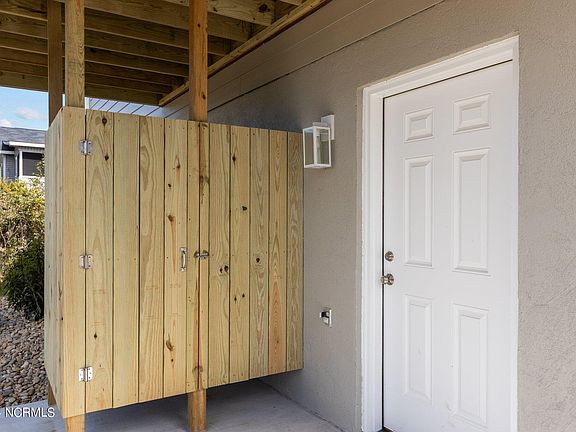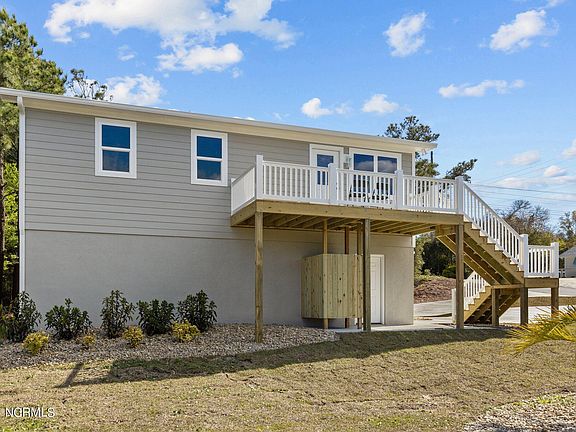 Nestled in the heart of the coastal community of Emerald Isle, this 3 bed, 2 bath townhouse offers a serene escape with a tasteful coastal aesthetic. The exterior has been upgraded to hardie board, with new windows throughout, giving the home a fresh and modern look. Bahama shutters on the front of the home and palm trees accenting the side yard add to the coastal flair. Step inside to discover beautiful beams adorning the ceiling, creating a warm and inviting atmosphere throughout. The interior is thoughtfully designed with coastal accent fixtures throughout, complementing the light and airy feel. Luxury Vinyl Plank (LVP) flooring adds a touch of elegance, while the custom tile master shower is a luxurious retreat. The main living area features an open concept layout, perfect for entertaining or simply enjoying the coastal lifestyle. Step outside to your brand new deck, perfect for soaking up the sun or enjoying evening breezes. The property also boasts a 4-car garage, providing ample space to store beach toys or convert into a flex space for future use, adding versatility to this already impressive property. Exciting upgrades are on the way, with the seller currently awaiting the completion of a concrete driveway, epoxy garage flooring, and an outdoor shower, adding convenience and luxury to this already impressive property. This townhouse presents a rare opportunity to own a piece of coastal paradise just in time for the upcoming season. Whether you're seeking a full-time residence, a second home, or an investment property, this home offers it all. *Professional marketing photos include various options of virtual staging to showcase the space with different looks throughout, allowing you to envision the possibilities of this stunning floor plan. Don't miss out on the chance to make this property your own and experience coastal living at its finest! This home has been completely remodeled and is turn-key ready, offering you a hassle-free move-in experience.