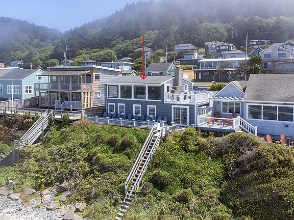 RARE INVESTMENT OPPORTUNITY! Ocean front property with private stairs to the sand! Located in the highly sought-after Roads End area of Lincoln City. Entering the home all you see is a 270-degree view of the beautiful Pacific Ocean, sand and surf. Ocean views from 4 of the bedrooms as well. Outdoor enclosed area, deck overlooking the ocean and double carport. Original cedar, Doug fir and Pine throughout. Gas fireplace in the living room and in the master bedroom. This is a well-established and successful vacation rental, gross rent in 2022 was $107,733.50, 2023 was $136,138.50. UNTIL NOVEMBER 22ND VACATION RENTAL PERMIT TRANSFERS WITH SALE OF HOME. NO NEED TO REAPPLY AND WAIT IN LINE FOR NEW VRD PERMIT WITH CITY. Property managers happy to continue managing. Broker related to sellers