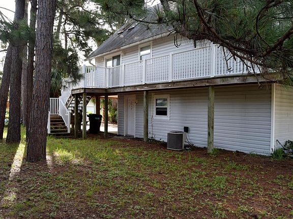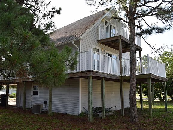 STILT HOME ON A CORNER LOT ACROSS THE STREET FROM THE LAGOON WITH A WATER VIEW FROM THE WRAP AROUND DECK. THE WINDOWS AND SLIDING GLASS DOORS HAVE BEEN REPLACED WITH DUAL PANE VINYL WINDOWS. CENTRALLY LOCATED CLOSE TO THE BEACH and PUBLIC BOAT RAMPS. The Garage has been converted to a work shop.The Living room offers high ceilings and a fireplace ,with a wall of windows overlooking the deck.Master bedroom is located on the main floor with a full bath.The guest bedroom is on the second level with a full bath and sitting area. New roof , skylights ,water heater and kitchen appliances and new vanities and granite ,