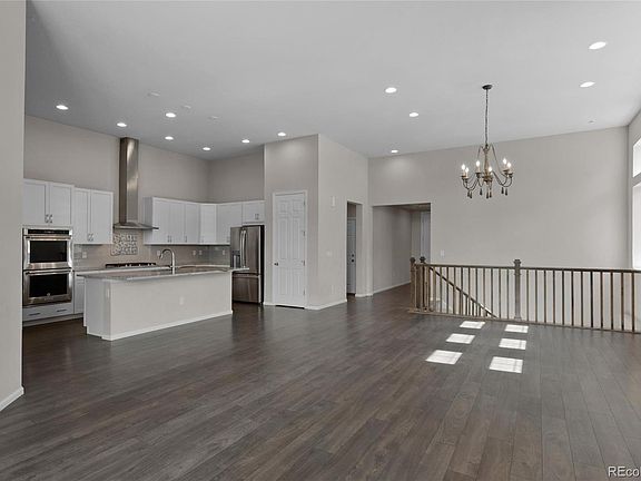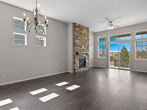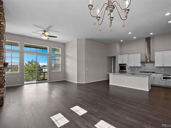 Welcome to this newer ranch home in Southshore! When entering this spacious home, you will immediately notice the well designed open concept, the high detailed ceilings and the lovely floors. The kitchen features granite countertops, a large island, a double oven, a spacious breakfast nook and a gas cooktop. All kitchen appliances and the washer and dryer are included with the home. The living room features a beautiful fireplace. Off of the living room is a large covered deck from which you can see the mountains. The primary bedroom has a gorgeous full bathroom and a large walk-in closet. The main floor features 3 additional bedrooms, one of which has been used as an office, an additonal full jack and jill bathroom between bedrooms 2 & 3 and a powder room. The walkout basement is huge with roughed in plumbing which is ready to be transformed into additional living space. The home has an oversized 3 car garage. This is an easy walk to Aurora Reservoir and also conveniently located to the elementary school, middle school and high school. The HOA includes access to 2 separate rec centers that both have large pools. Southshore is in the highly desirable Cherry Creek School District. The home is vacant and ready for a quick close.