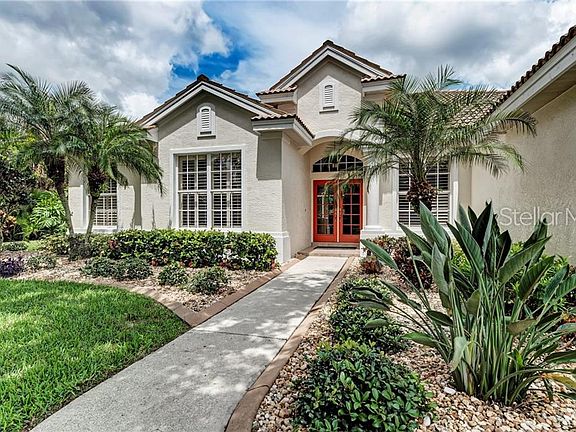 Gorgeous in gated Treymore! Designed by Arthur Rutenberg Homes, this lovely 4 BR plus office, 3 BA, pool home is perfectly placed on a quiet and private lot. Fresh, light and bright, this stunning home is in mint condition. Tile and wood floors throughout, custom built-in contemporary electric fireplace, handsome cabinetry, pendant and LED lighting, center island, plantation shutters, new gas water heater, Trane HVAC 2015 (10-year warranty), SS appliances, pool pump 2018, gas pool heater 2018 and more. Freshly painted (exterior & interior), the enhanced landscaping only adds to the curb appeal! And, this is one of the few lots in Treymore where you can fence in your backyard! Treymore enjoys a premium location within Palm Aire where the golf club is optional but easily accessed by the community's back golf cart gate where members can drive their own golf cart. The Palm Aire Country Club boasts golf, tennis, pickle ball, fitness, and social memberships. Just minutes to downtown Sarasota, SRQ Airport, UTC Mall and white sandy beaches. Don't miss this one!