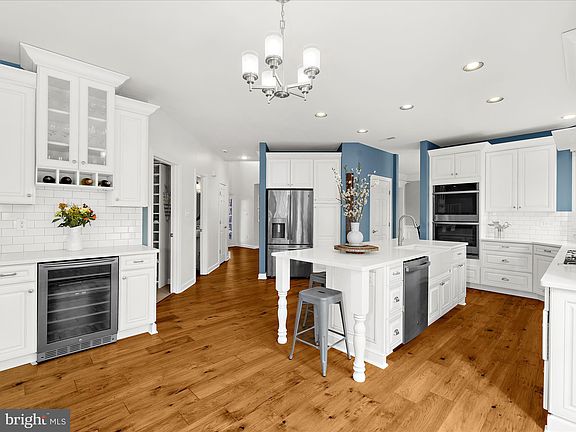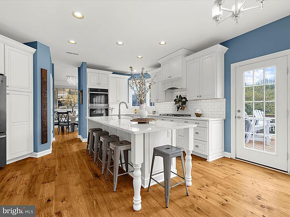 Stunning brick-front colonial featuring timeless design and expert craftsmanship nestled on a quiet cul-de-sac in the highly sought-after Grovemont neighborhood! From the moment you step inside, you feel the warmth and welcoming ambiance of this beautiful home. The two story foyer is bathed in natural light. Wide plank hickory engineered wood flooring and on-trend neutral paint set the tone for this special home. The heart of the home is the fully renovated chef's kitchen featuring custom white cabinetry with soft close doors & drawers, an expansive 9' island designed for gathering and entertaining, quartz countertops, a porcelain farmhouse sink, stainless steel appliances including a gas cooktop, double oven with convection, custom backsplash, upgraded lighting, and a dedicated beverage nook with mini-fridge — truly an entertainer's dream! Relax in the sunken family room featuring upgraded plush carpet and a wood burning fireplace with custom trim, shiplap, and mantle. An elegant chandelier and decorative molding accentuate the formal dining room while the 12' tall expansive living room showcases a grandeur Palladian window and a radiant sun-drenched glow. The main level home office is perfect for work from home and features impressive custom built-in soft close cabinetry, white Carrara marble countertops, and a shiplap accent wall. The upper level features four generously sized bedrooms, two upgraded baths and an option for upper level laundry. The double-door entry primary retreat offers upgraded carpet, a tray ceiling, two walk-in closets, and a spa-like primary bath with upgraded cabinetry, flooring, quartz countertops, upgraded fixtures, a soaking tub, and a frameless shower. The finished walk-out lower level features a private 5th bedroom, a full bath, and a spacious living area, perfect for playing a game or binging your favorite shows. Relax on the low-maintenance deck overlooking a spacious flat back yard backing to open space and wooded preserve — perfect for gatherings and privacy! This home is located just steps to the natural beauty of Patapsco State Park and Rockburn Branch Park and provides great access to commuter routes. Recent mechanical updates include upper level HVAC in 2024, roof in 2017, main HVAC in 2017 and water heater in 2017. Don't miss your opportunity to let your memories flourish in this timeless gem of a home!