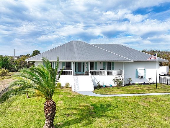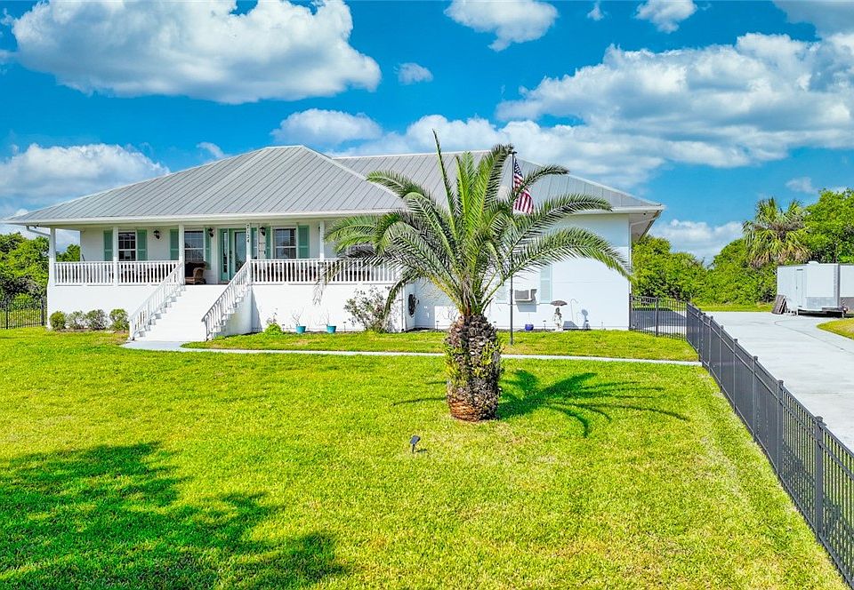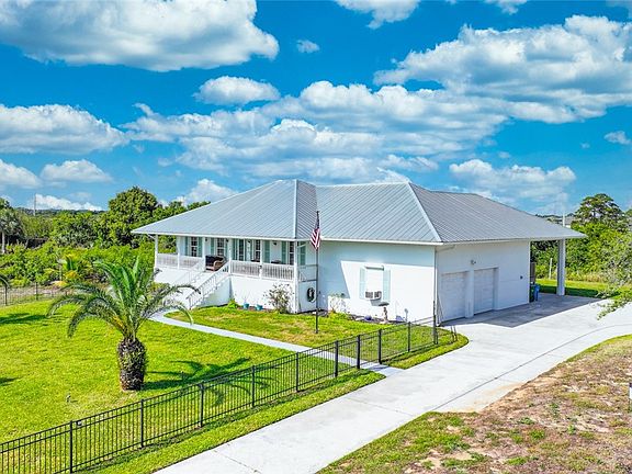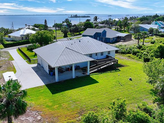 Custom Home with River Views! NO HOA and covered parking for the Boat/RV with a dedicated 20/30/50 amp outlets. Beautifully crafted, set on 1 acre. This home is 3 beds, 2 baths, and has a front and rear porch with ramp for accessibility. The home has abundant natural light, split bedrooms, galley kitchen, a garage w/8 foot overhead doors, along with a 4 ft high aluminum fenced front yard. Accordion/roll down shutters for lock it and leave it ease, metal roof and garage elevator. The home also offers the option to purchase the adjacent lot providing more potential. AC 2025 RMSZAPPSUBJ2ERR.