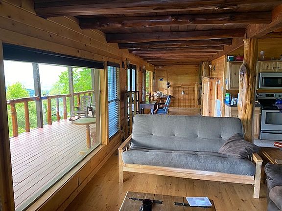 Log cabin type home with unobstructed views of the Appalachian Trail (Gregory's Bald). Very quiet location on top of Chilhowee Mountain. It may seem far away, but you can be in town (Maryville) for shopping etc in about 20 minutes. The home has a generator on it that automatically kicks on if power goes down for 15 seconds or more. The house is on a well and heat pump. The water has a special UV filtration system and filters get changed a minimum of yearly or more often if needed to keep the water table in balance. This is a home for someone who LOVES being right in the mountains. Would also consider selling for the right offer and would even consider financing some of it pending down payment etc.