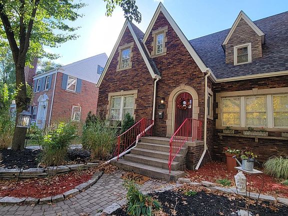 Spacious ALL BRICK two-story on historic Forest Ave. Storybook charm from the moment you walk up the landscaping path to the vintage front door. Living room feat. a wood burning fireplace w/ accent wall, tray ceilings, recessed lighting & arched entryways to the open concept formal dining & sun room area. Main level also features kitchen w/ tile backsplash & SS appliances that stay, large bed & updated tile 1/2 bath. Upstairs - updated, distinctive full bath & 2 XL bedrooms w/ large nooks and closets. Refinished, original hardwood floors & solid doors w/ glass knobs, ALL UPDATED PLUMBING & ELECTRICAL (w/ all new light fixtures), most windows updated. Semi-finished rec room w/ built-in workshop in basement. Matching ALL-BRICK 2 car garage, sizeable yard & patio area enclosed with NEW VINYL FENCING (2016). Exterior- tuck pointing & chimney tops redone (2021), NEW AC & FURNACE (2021), Gutters (2021), NEW HOUSE & GARAGE ROOF- complete tear offs/replaced (2016). PERFECT for commuters!