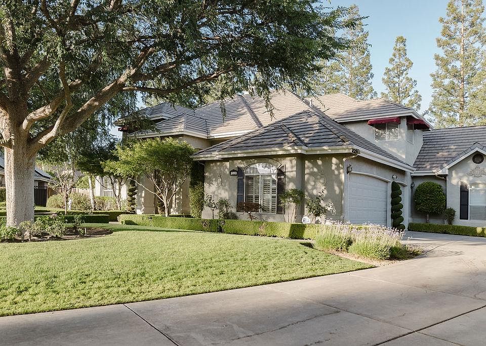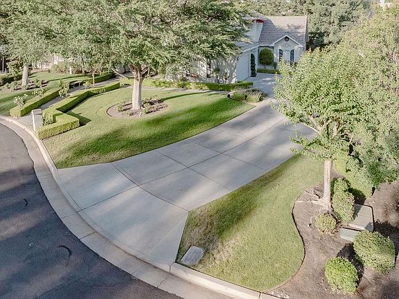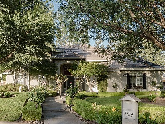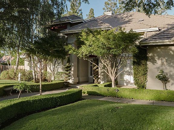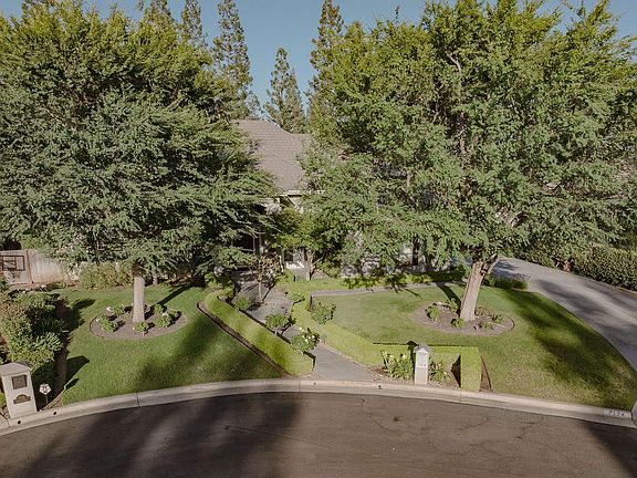 This Northwest Fresno home sits on a quiet, tree-lined cul-de-sac in a well-established, sought after neighborhood just off Van Ness Blvd. The oversized front door opens to a spectacular great room with floor to ceiling windows offering tons of natural light, and which looks out to the backyard oasis complete with refreshing pool, covered patio, and green spaces. The main floor offers a formal dining room as well as an office/den with French doors. The kitchen has refreshed cabinets, a center island, two sinks, and a built-in gas range. The kitchen nook offers a place for family dinners and a bay window with built-ins. A half bath and utility/laundry room are off the kitchen. Rounding out the main floor is one bedroom, a bathroom, and the primary suite/ensuite. This spacious room has a walk-in closet and a private door to the backyard. The bathroom is white and bright with a jetted tub, lots of windows, storage, dual sinks, and walk-in shower. The upper level offers two well proportioned bedrooms and a full bathroom. Additionally, there is a loft area that could be used for a playroom, reading room, or game room. This home's curb appeal is truly remarkable with a front yard that is nearly pristine. Don't miss out on the chance to make this home your own in a family-friendly.