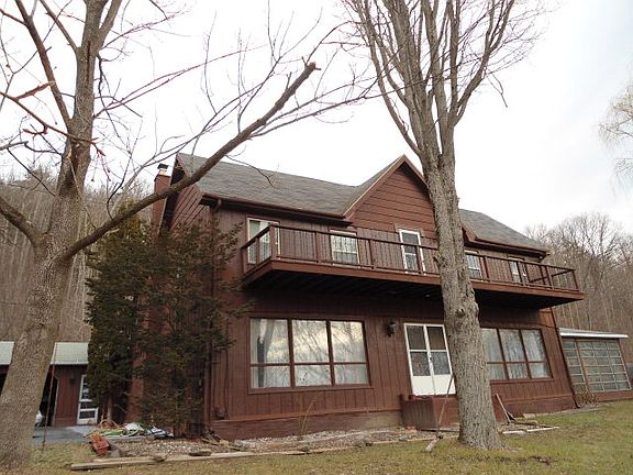 LARGE beautiful home located just outside of the village! Close enough for municipal electric & water but far enough away for only 2 tax brackets. Large family room w/ huge fireplace & sitting area, formal dining room w/ ample windows for natural sunlight, gorgeous formal entrance in foyer, master suite has ample closets, large bedroom w/ custom backsplash & master bath includes garden tub, balcony off the second level for scenic viewing, surrounded by nature w/ trees & wildlife, Full market assessed value is $212,128, separate guest house/office on back of house. Selling As-Is.