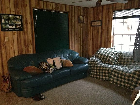 1960s built cabin approx. 1/3 mi. from area beach. Cabin is across the street from the open field maintained by the Tulakogee Conference Center. Approx. 850 sq. ft. on approx. half acre. Bot over 20 yrs. ago, virtually everything has been redone. Tamko 30 yr. architectural shingles in 2007 & most other updates done thereafter. Septic tank & water line from meter to house replaced. French drains added at back of the cabin as well as near the rear fence line. Carpeted thru-out, except for art deco type tile in the bathroom. Double paned vinyl windows thru-out except for the bathroom which still has the original tiny casement hand crank. Pretty much move in ready. Very nice propane converted Frigidaire range, refrigerator & microwave with cart stays. Outdoor Weber propane grill also stays. Property includes 8 by 10 Lifetime brand storage shed on re-poured concrete pad. Propane heat & cooking, everything else rural electric.