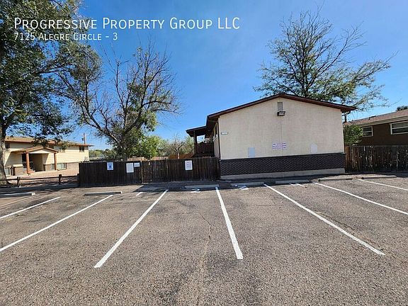 Move In Now Pay Half Rent Next Month! Don't miss out on this well-maintained 2-bedroom, 1-bathroom home offering an open floor plan and comfortable living space. Located just off Alegre Circle and CanAm Hwy, this lower-level unit in a 4-plex features neutral-toned paint throughout, updated carpet in bedrooms and LVP flooring in living areas. Modern fixtures shared fenced yard, ample storage space, 1-reserved parking in front of the building, plus street parking available. Do not miss out on this 2-bedroom, 1-bathroom home offering an open floor plan, located on Alegre Circle and CanAm Hwy. The unit is on the lower level of a 4-plex building, featuring a shared yard, ample storage, neutral-toned paint, and updated carpet and LVP flooring. The unit also includes modern fixtures and new appliances. Unreserved parking is available in the lot in front of the building, with additional street parking. Situated in School District 3 with easy freeway access. Enjoy the convenience of proximity to military bases, Willow Springs Pond, Mesa Ridge Pkwy, Fountain Creek, and Fountain Creek Nature Center Features & Amenities: Fresh paint throughout LVP and carpet flooring Updated fixtures & ceiling fans Built in 1971 Storage units included Coin-operated washer/dryer on-site Lawn care/yard maintenance provided Parking lot available Located in School District 3 Utilities: Lessor will charge tenant a flat fee of $125 per month for Water, Sewer, Gas and Trash plus $5.00 per month Administrative Processing Fee. Tenant responsible for Electric (set up with Fountain Electric; account must be provided at lease signing Move in Special: Military discount: Half off the application fee with valid military ID Pet restrictions: Pets OK: 1 mature cat or dog under 45 lbs Pet deposit: $150 Pet rent: $35/month per pet Smoking Restrictions: No smoking or marijuana use permitted on or around the premises Don't waitthis unit won't last long! Contact us today to schedule a tour and make this great space your next home. *We're excited to offer AppFolio Guard, providing a secure and simple way to manage your security deposit. This service allows for payment installments, ensuring a smooth and transparent process with timely updates and clear documentation throughout your tenancy! Contact Progressive Property Group LLC Lawncare & Landscaping Maintenance Shared Coin Op Washer & Dryer Snow Plow Storage Unit Included At No Charge