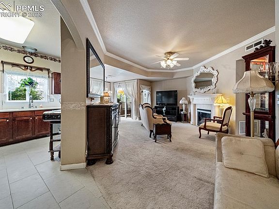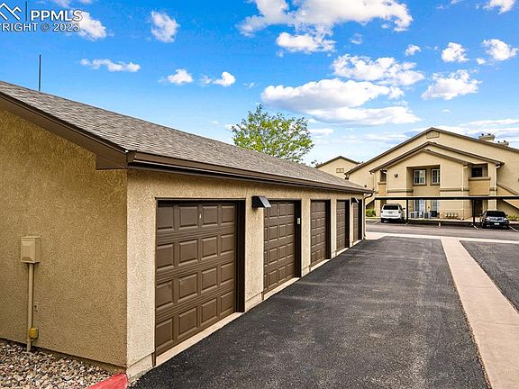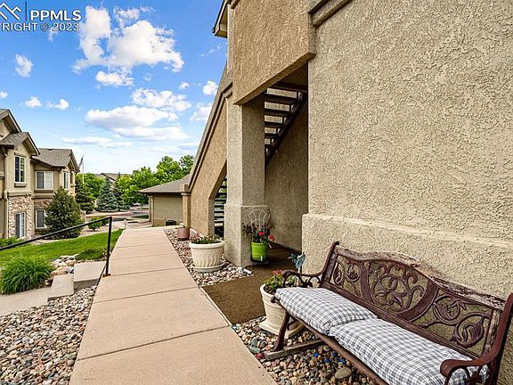 MAIN LEVEL RESORT STYLE LIVING AT ITS FINEST! Located in the gated community of the Village at Springs Ranch Condominiums, this STUNNING TWO BEDROOM condo has MAJESTIC VIEWS OF PIKES PEAK, FRONT RANGE and POOL! You will love that it has a DETACHED ONE CAR GARAGE (#11) just steps from your front door and an ASSIGNED CARPORT (#139)! It has a Gorgeous Newly Updated Kitchen with WHITE QUARTZ COUNTERTOPS, WHITE MARBLE FLOORS and STAINLESS-STEEL APPLIANCES! This beautiful home has custom touches and finishes throughout! The Dining Room has awesome mountain views and plenty of with natural light! It opens to the Great Room with a cozy GAS FIREPLACE! Walk out from either the Dining Room or from the Spacious Primary Bedroom Suite to the PRIVATE PATIO offering a charming sitting area to enjoy the Breathtaking Views and amazing Colorado Fresh Air! Both Bedrooms have walk-in closets and adjoining bathrooms! You will enjoy all that the COMMUNITY CLUBHOUSE has to offer: a FITNESS CENTER, an outdoor heated POOL and HOTTUB! Plus, it also has a New Furnace! New Hot Water Heater! AC for those warm summer days! Walking distance to elementary school and parks! Amazing view of RM Vibes Fireworks! Conveniently located to Peterson AFB/Schriever, First & Main Towne Center (featuring an IMAX Theater & Summer Concerts) and endless Shopping & Dining along the Powers Corridor! LOW MAINTENACE LIVING allows you MORE TIME to do the things YOU LOVE to do the most in the Olympic City of Colorado Springs! Welcome Home!