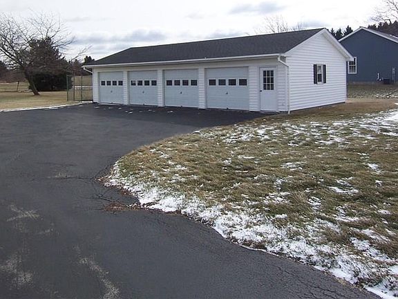 Nice size country Ranch situated on 1.3 acres. Modern eat-in kitchen, formal dining room, 3 bedrooms, 1.5 baths, 1st floor laundry, beautiful hardwood floors under carpets, awesome full basement would make for a great recreation/family room, newer gas forced air furnace & central air, whole house generator, public water, attached garage PLUS a detached 4 car garage with electric just the place to store all of the toys or a huge shop, vinyl siding, Blacktop driveway, MUST SEE!!