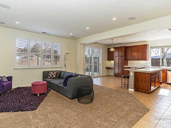 This home is sure to please with 3 bd + office / 2 bath / single level floor plan. Best of all - NO HOA's or CC&R's. A nearly maintenance free backyard, wrap around paver patio, no rear neighbor and greenbelt separating this home from the neighboring community. Newly painted exterior, all windows re-screened, private master suite separate from two additional bedrooms and office. The open concept kitchen + family room make for easy entertaining. Kitchen offers a large quartz top center island with 3 additional seats. Sure to please is the abundance of cabinets offering ample storage. A deep, modern kitchen sink and gas stove top are an added bonus. Refrigerator, washer/dryer and storage shed will all convey with the property at time of sale. California shutters add extra value and a clean, stylish design making this home turn-key and move-in ready! Located at the base of Somersett - this home is just minutes from 1-80 freeway / 25 minutes from some of the best skiing, hiking and biking that Tahoe has to offer / 10 minute drive to daily conveniences, restaurants & grocery / 10 minute drive to Somersett Golf and Country Club and only 15 minutes to Midtown to enjoy some of Reno's best nightlife and trendiness restaurants. Don't let this property pass you by as it's sure to go quickly! Kitchen offers a large quartz top center island with 3 additional seats. Sure to please is the abundance of cabinets offering ample storage. A deep, modern kitchen sink and gas stove top are an added bonus. Refrigerator, washer/dryer and storage shed will all convey with the property at time of sale. California shutters add extra value and a clean, stylish design making this home turn-key and move-in ready! Located at the base of Somersett - this home is just minutes from 1-80 freeway / 25 minutes from some of the best skiing, hiking and biking that Tahoe has to offer / 10 minute drive to daily conveniences, restaurants & grocery / 10 minute drive to Somersett Golf and Country Club and only 15 minutes to Midtown to enjoy some of Reno's best nightlife and trendiness restaurants. Don't let this property pass you by as it's sure to go quickly!