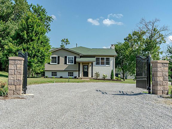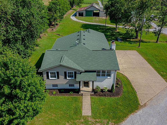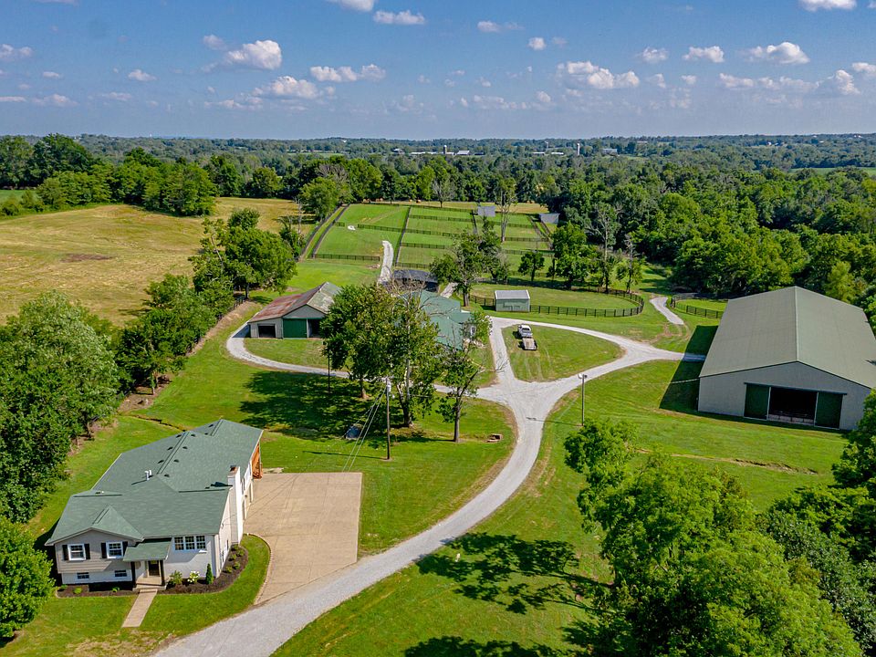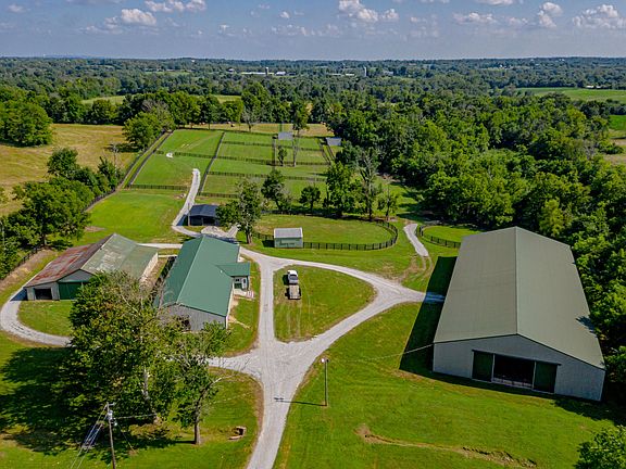 This turnkey Equine Estate is centrally located between Louisville & Lexington in Smithfield KY on 57 acres in pristine condition, ready for your horse facility! The 3bed/3bath home is completely renovated surrounded by finish mowed pastures and freshly painted fences with new gates. The move-in ready barns are updated & cleaned with automatic water fountains, rubber mats & baled hay in loft. The gated estate encompasses: a renovated 3040 sq ft home, 11 horse paddocks, 200 x 80 indoor riding arena, 2 outdoor riding rings, 3 barns with a total of 32 stalls, wash room, tack room, office, bathroom, lab room & work shop. There is approximately 12 acres of wood & streams, 25 acres of hay, 10 acres of pasture & 10 acres of paddocks with 3 run-in sheds. The home has original hardwood floors, More completely renovated kitchen with high end appliances, including wine rack & cooler, granite countertops and butlers pantry with a beverage/coffee bar. The kitchen opens to a massive (25' x 29') vaulted entertainment room overlooking the riding arena and barns with an open wall of windows and cozy fireplace. Step outside to further enjoy breathtaking views on a 25' x 16' covered deck directly adjacent to the room. The master suite features a large dressing room, remodeled bathroom with 9 ft quartz vanity and sit down make-up area. The walk-in closet is 18 ft long with an office/private sitting area. There are 2 additional bedrooms with a remodeled bathroom, and a second family room with a wood burning fireplace. There are also built-in book shelves along the hallway with detailed custom trim work leading to the bedrooms. Other features of the house include 2 HVAC systems and a Reverse Osmosis Filtration system. There is a 2 car garage on one side of the house and a separate 3rd garage on the backside that could be used as a workshop. Take a short walk to the riding arena (200 x 80') with 30 automatic water fountains around the perimeter which would allow for 30 additional portable stalls. Newly upgraded energy efficient LED lighting are installed throughout the entire arena. The larger stall barn has 15 stalls, massive washroom, lab room with built-in cabinets, refrigerator, office/ lobby with separate