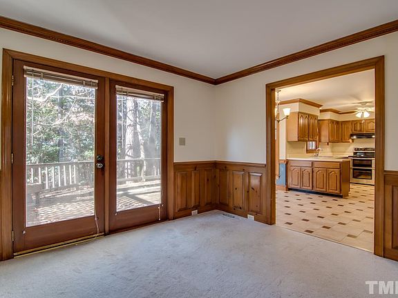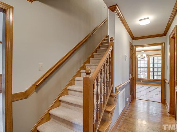 This cozy charmer will win your heart from the start with the large family room and stunning masonry fireplace. Deck with built-in bench. Walkup attic could easily be finished. Downstairs AC new in 2018. Great floor plan, 2 entrances, 3 bedrooms and 2.5 baths, lots of storage, this is in a perfect location - super convenient to the pool and also the entire Triangle. Low HOA fees with community amenities including pool, tennis and playground.