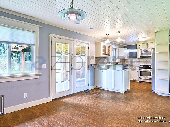 This property is available. Please inquire on this site to schedule a showing. Welcome to 7125 Valley View Dr, a charming multi-level home located in the peaceful neighborhood of Gladstone, OR. This inviting residence boasts a classic exterior with cedar siding and brick accents, surrounded by mature trees that offer a serene setting. The spacious front yard leads to a welcoming entrance, where you'll find a blend of original character and modern updates throughout the home. Inside, the living room features a cozy stone fireplace and built-in shelves, perfect for relaxing evenings. The large windows provide ample natural light, enhancing the warm wood flooring that runs throughout the main living areas. The heart of the home is the bright and airy kitchen, complete with stainless steel appliances, subway tile backsplash, and plenty of cabinet space for all your culinary needs. Adjacent to the kitchen is a dining area with French doors that open to a lovely covered patio, ideal for outdoor dining and entertaining. The backyard is a lush, private oasis, with plenty of space for gardening or play. With spacious bedrooms, updated bathrooms, and a versatile layout, this home offers comfort and convenience. Located near parks, schools, and local amenities, 7125 Valley View Dr is a perfect place to call home. Available: NOW Heating: ForcedAir Cooling: None Appliances: Refrigerator, Microwave, Dishwasher Laundry: Hook-ups Parking: Attached Garage, Off Street, 3 spaces Pets: Dogs Allowed, Cats Allowed Security deposit: $2,850.00 Included Utilities: None Additional Deposit/Pet: $500.00 Disclaimer: Ziprent is acting as the agent for the owner. Information Deemed Reliable but not Guaranteed. All information should be independently verified by renter.