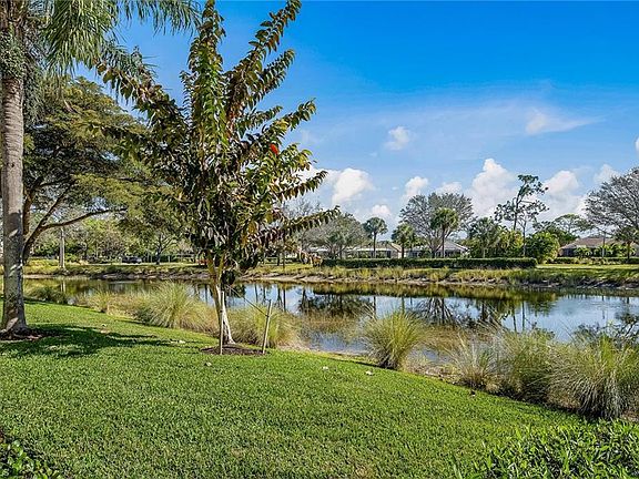 Delightfully sunny and pristine, this lakefront beauty in Autumn Woods offers a rarely available first-floor coach home with three true bedrooms and a two-car garage with electric car hookup. Light, fresh and neutral, this home has been well maintained and enjoys sparkling eastern views over broad lake. New HVAC in 2022, newer water heater, new stainless appliances and new carpet all make this residence move-in ready. The white kitchen offers granite countertops with lovely views through the large lanai and the owner’s suite boasts huge walk-in closet and large bath with dual sinks, large shower and soaking tub. Cedar Ridge has had all roofs replaced as well as new exterior painting and lighting. A dog-friendly community. Autumn Woods is conveniently three miles to the beach, two miles to Mercato and Waterside Shops. Amenities includes a 24-hour guarded gatehouse, clubhouse, fitness center, heated pool and spa, basketball, play area, nature trail, tennis and pickleball. A-rated public schools and three excellent private schools nearby.